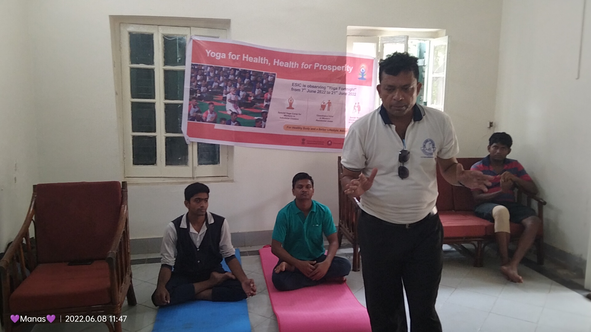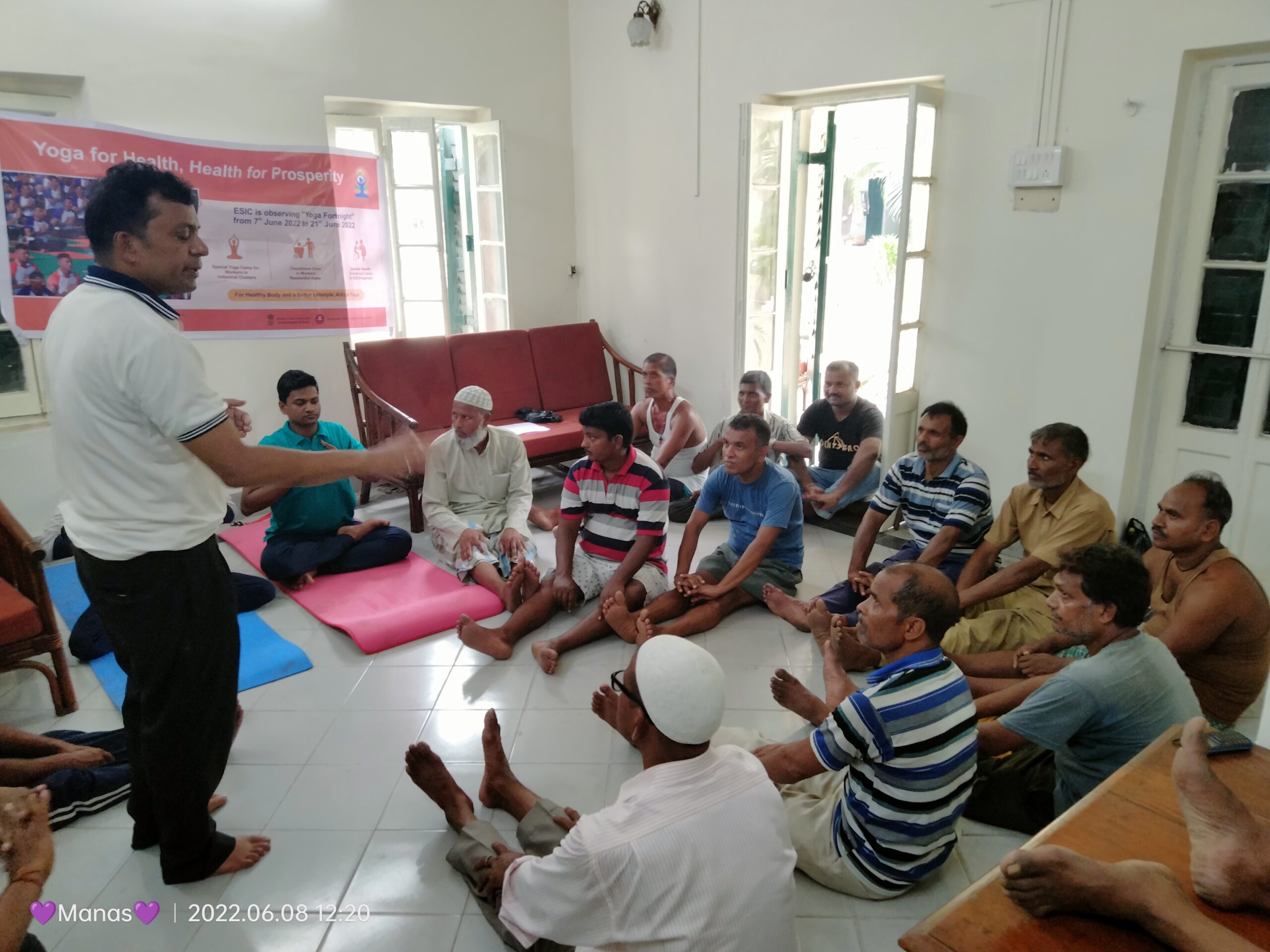 Photographs and videos of structured Yoga Therapy sessions conducted at ESIC Medical College & Hospital, Joka, serving patients and healthcare professionals.
